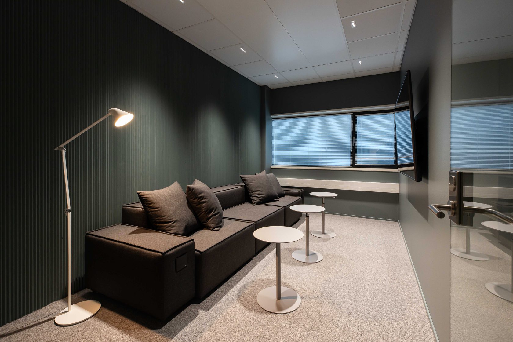 Pinto created alternative layout plans for the positioning of different functions and sparred opportunities with the staff. The chosen layout was the design of peaceful team spaces and a large centralized social lounge that would bring together all the employees. The number of conference rooms were being increased and new facilities for project work were being created. Spaces for independent work as well as telephone facilities were also located in different parts the office.