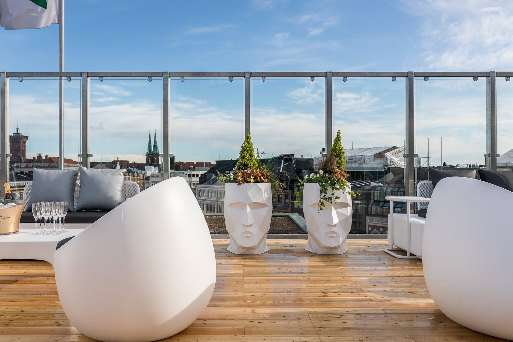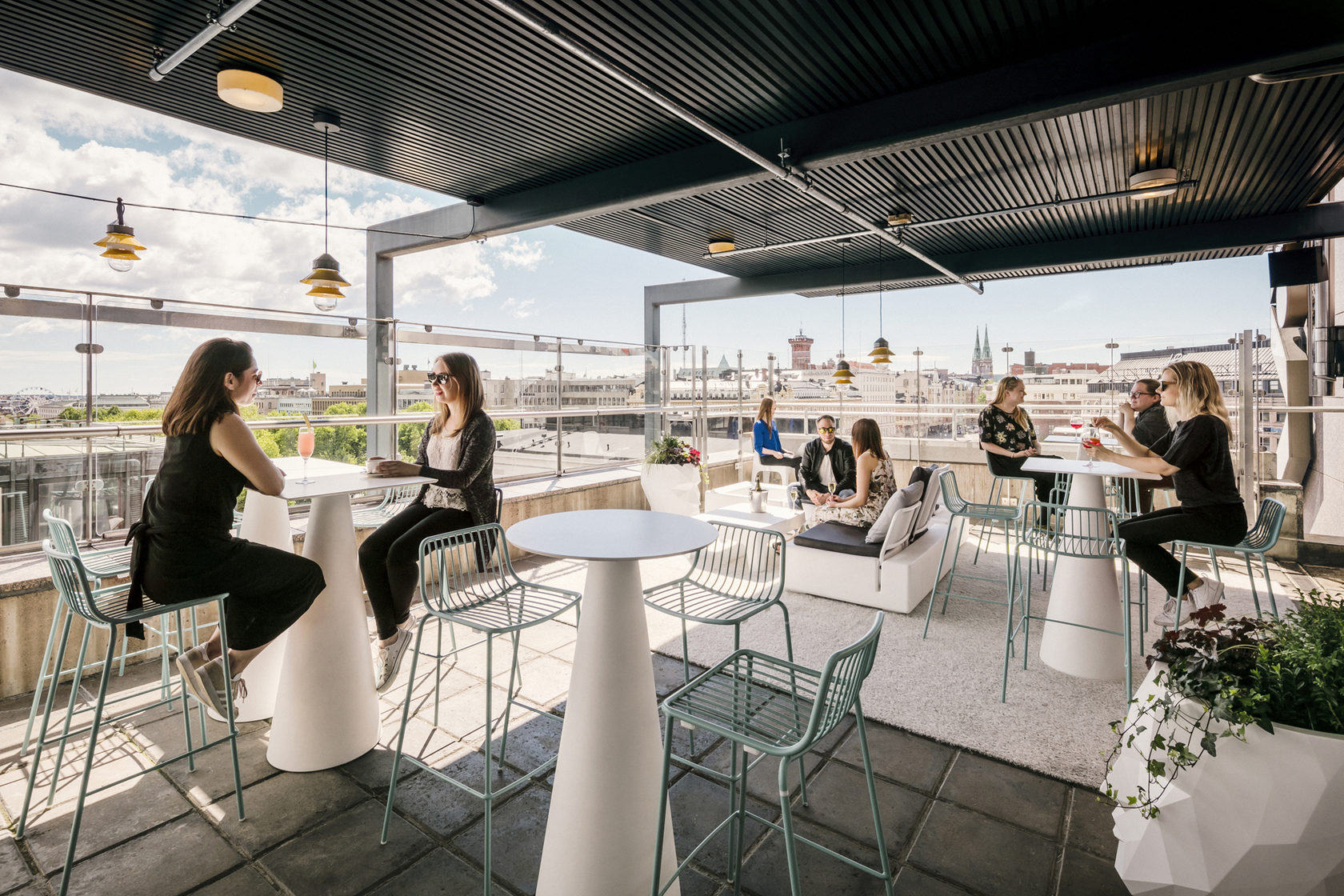 Tyylillisesti tilojen haluttiin muistuttavan naapurissa sijaitsevaa Ravintola Teatteria, josta Roofin tiloihin tuotiin selkeys ja tyylikkyys. Terassin tilat muokattiin pitkälti kalusteiden, viherkasvien, valaistuksen sekä korostusvärien avulla, sillä tilan industrial-henkisyys haluttiin säilyttää. Korostusvärinä kattoterassin sisustuksessa käytettiin turkoosia, joka heijastelee Helsingin vihertäviä kattoja.